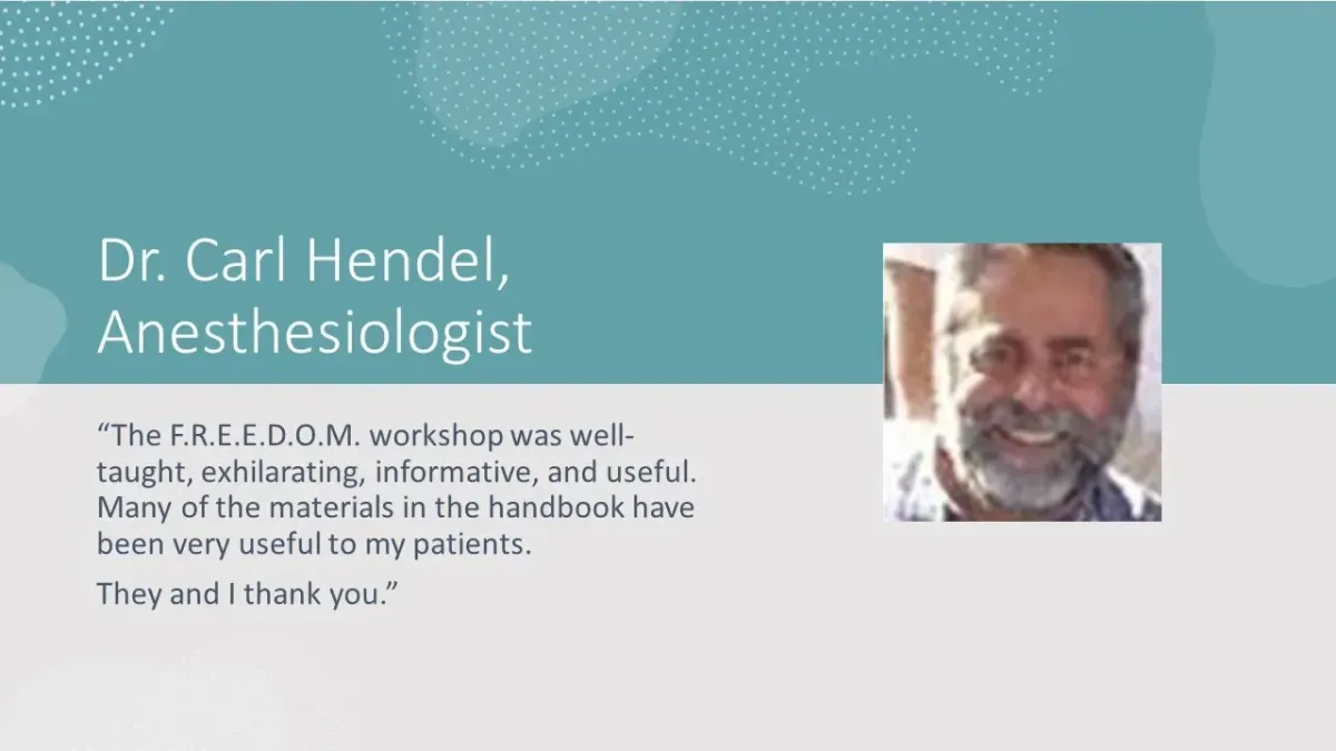 What do you need? Less Pain? Mitigate Stress? Blast fears and phobias? Add energy to your day? Go from confusion to clarity? Dissolve mental blocks? Remove "old pain?" We did all that during the workshop, now presented as an online course.