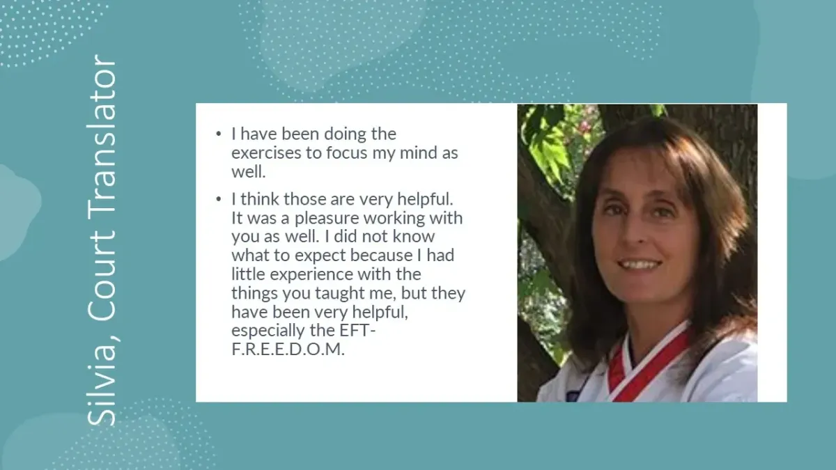 Silvia was going through a tough divorce and suffered from LAS-Legal Abuse Syndrome. She panicked when she got a letter from the adverse attorney, and panicked when she had to go to court.