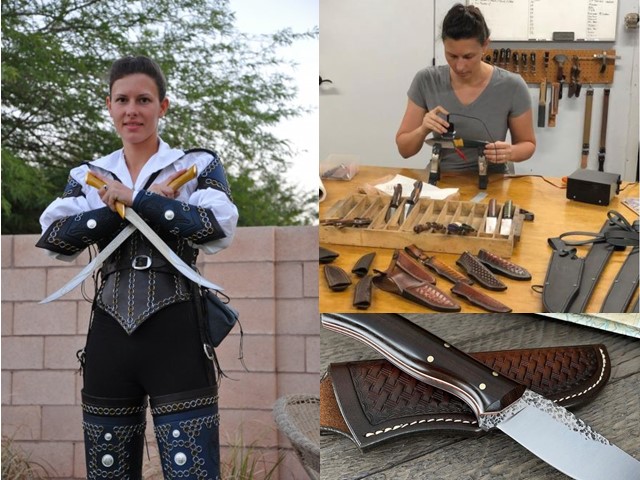 As her skills grew, she started crafting knife sheaths… then knife handles… and eventually learned the full art and science of making knives herself.